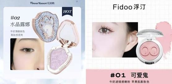 左:花知晓独角兽腮红#02水晶露娜;右:浮汀腮红#01可爱鬼