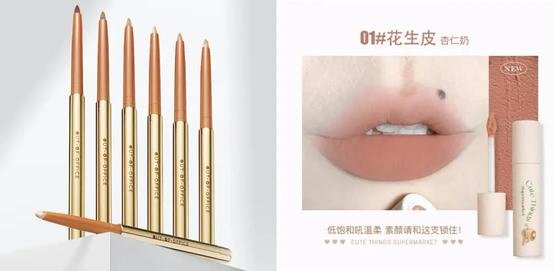 右:花落莉亚奶糕唇霜#01花生皮
