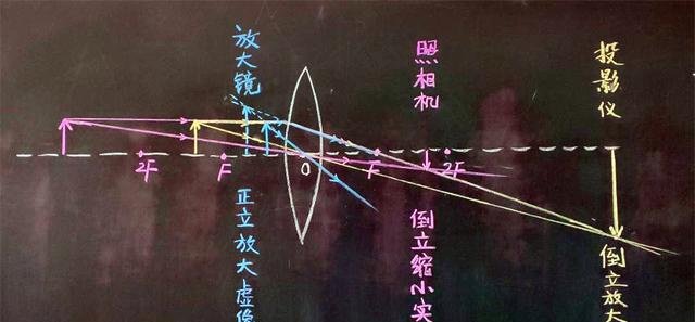如下图所示,我们只需要在三个位置分别画出两条特殊光线,就能得到三个重要图像,其特点及其应用也是一目了然。