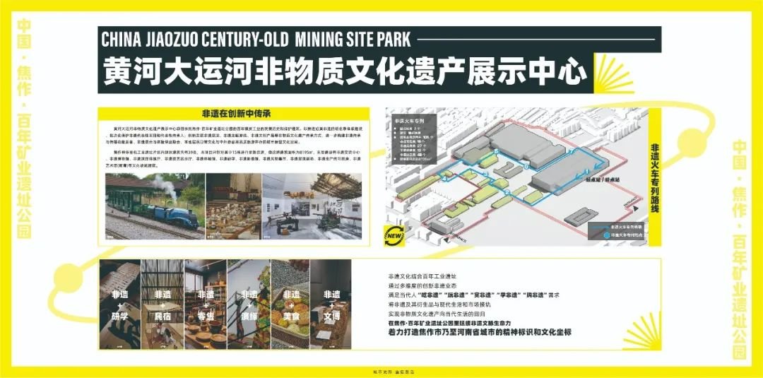 项目中建设“黄河大运河非物质文化遗产展示中心”,依托焦作·百年矿业遗址公园的百年煤炭工业的发展历史和保护建筑,以推进沿黄非遗四级名录体系建设、批次化保护非遗代表性项目和代表性传承人,创新发展非遗展演剧场、非遗交流中心、非遗博物馆、非遗艺术馆、非遗体验馆、非遗风物集市、“非遗影像馆+研学课堂”等非物质文化遗产传承方式,进一步构建非遗传承与传播功能兼备、非遗展示与消费体验深度融合、本地居民日常文化消费与中外游客高品质旅游消费并存的城市新型文化空间。通过新场景提升、新业态植入、新营销触达、新用户转化形成深度体验的创新拓展,拥抱未来市场实现“转换、再创、活化”进一步将中国非物质文化遗产传承融入现代生活。