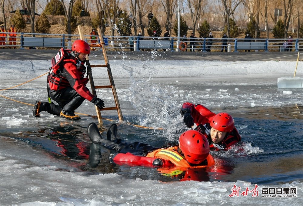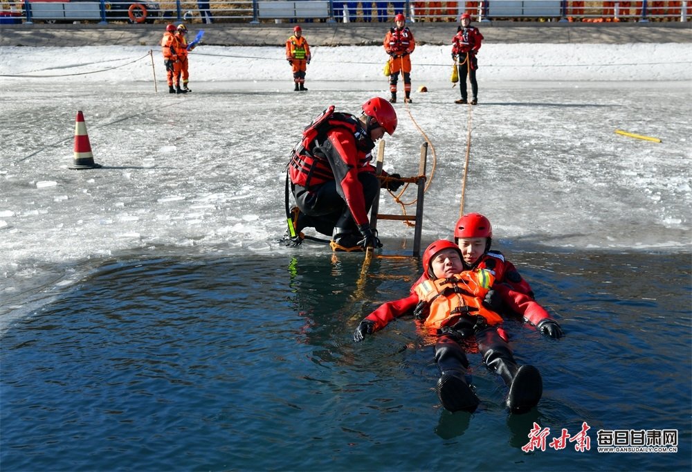 为做好冰面救援准备工作,提升消防救援人员极端严寒天气下冰上应急救援技能,连日来,嘉峪关市消防救援支队开展冰面救援实战化培训。