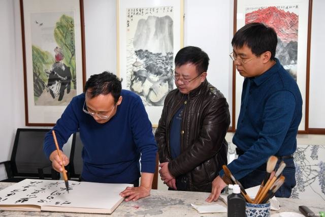 2月10日下午,著名书法家、山东大学艺术学院教授、王羲之研究所所长、硕士研究生导师、中国书协会员、教育部高等书法教育协会副会长、山东省书协主席团成员、楷书委员会主任张传旭和青年书法家、山东工艺美术学院书法专业教师、山东省书协学术委员会委员徐学炳博士走进文化视界,品茗论道贺新春,漫步中华艺术空间,接受中华网山东&文化视界网的专访,并在云间画室挥毫泼墨。