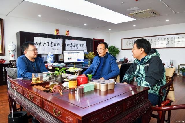 燕语声迎客,花香味待朋。中华网山东&文化视界网董事长梁洪文以茶会友,与张传旭、徐学炳师徒畅谈书法创作心得以及书法领域的发展和变迁。