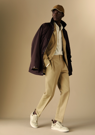 春夏系列的成衣一经上市即可应季穿戴。随着夏季的临近,设计变得更轻便、更阳光。剪羊毛束腰夹克、毛圈花呢披风和大衣、羊绒西装外套可搭配宽松裤装,皆有Loro Piana的经典标志,重新诠释创造品牌历史的外套款式,例如 Horsey® 和 Traveller 夹克、Bomber 与 Roadster,配以灵动的印花真丝连衣裙、羊绒毛衣和半身裙、飘逸的裤装、百慕大短裤。灵感源自航海的雨衣和风衣,而收边裤脚的阔腿裤则勾勒出利落的廓形。披风和长袍宽大洒脱,英姿飒爽。