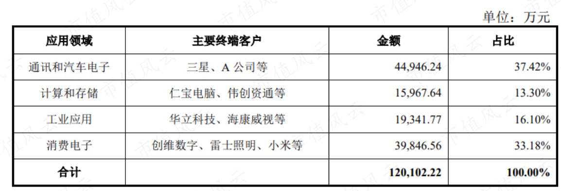 我们重点来看毛利率排前三的下游应用领域当中公司的市场地位:通讯电子、工业应用、汽车电子。