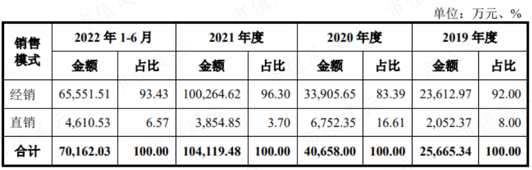 值得注意的是,公司的销售模式以经销为主,一般来说并不直接服务这些大牌客户。2021年,经销占营收的96%。
