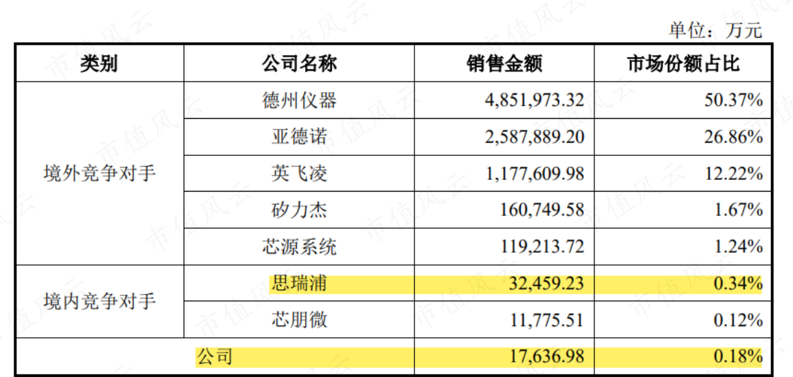 留给其余选手的空间可谓寥寥,公司的国内竞争对手主要包括思瑞浦、芯朋微,市占率水平只能说“彼此彼此”。