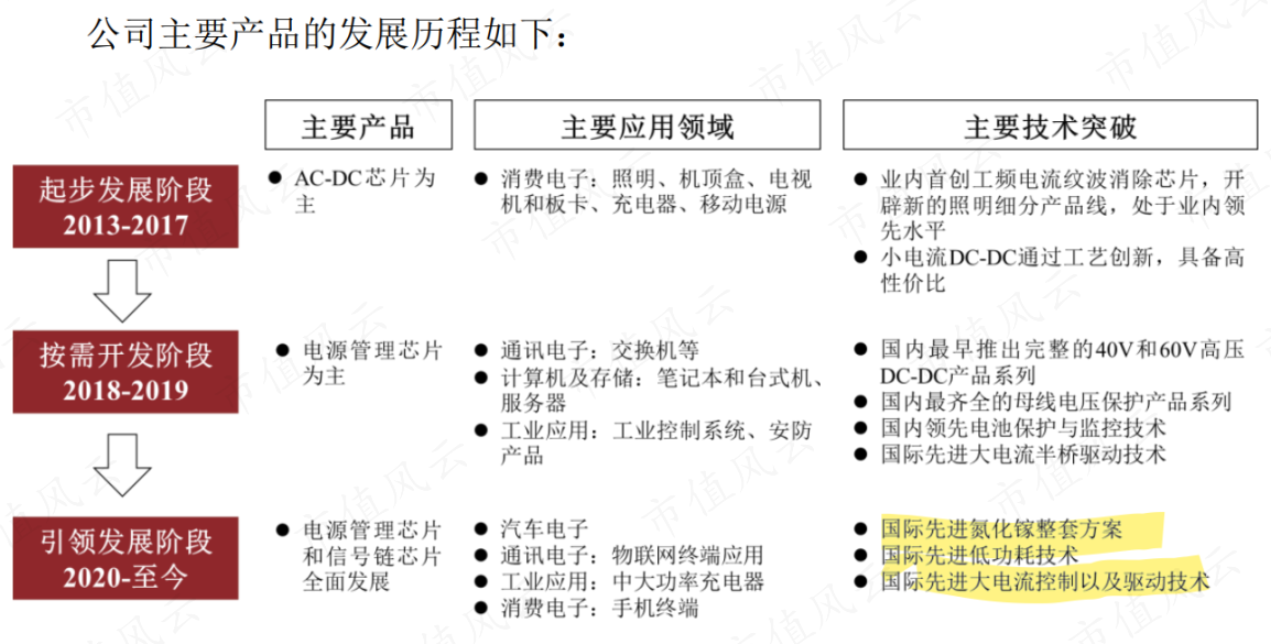 公司近年来相继研发出了高集成度大电流系列、高压高精度高可靠性功率管理系列等多类具有首创性的芯片产品,研发实力较强,自主研发、设计的部分产品性能已经处于国际先进水平。