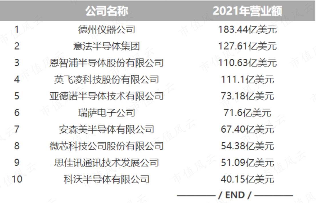 工业应用领域则是另一番景致:德州仪器一家独大,独霸了全球市场半壁江山,亚德诺、英飞凌紧随其后,合力又吃掉了近4成的市场空间。