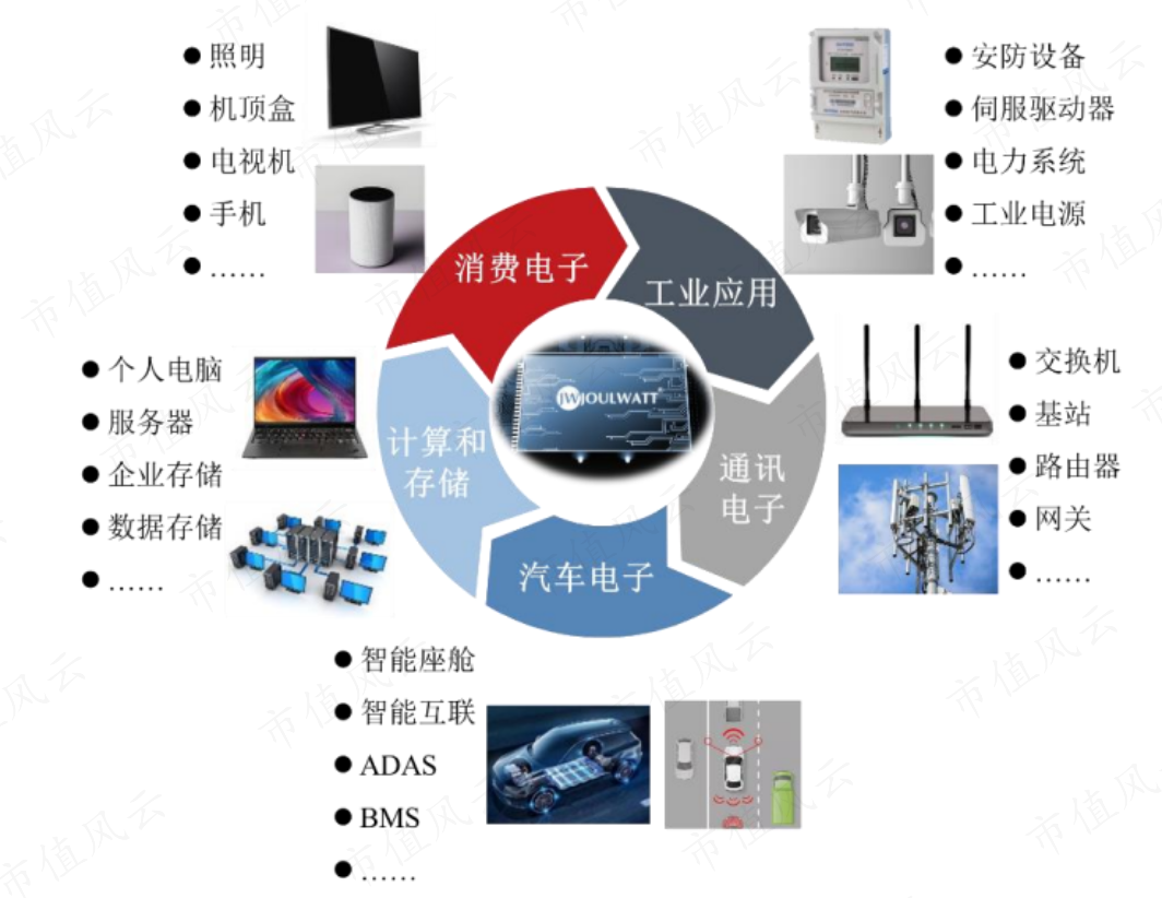 高压工艺产品主要运用于通讯电子、工业应用等领域,包括高可靠性的电池管理、服务器、通讯、工业、新能源等应用;
