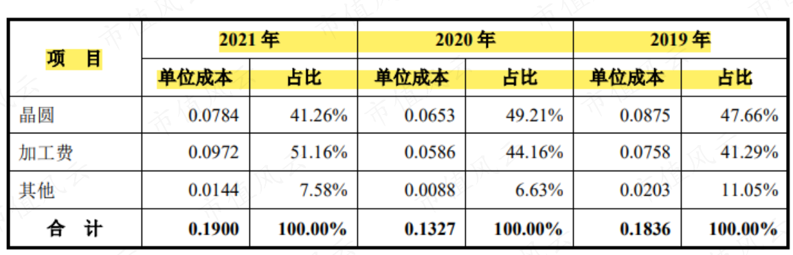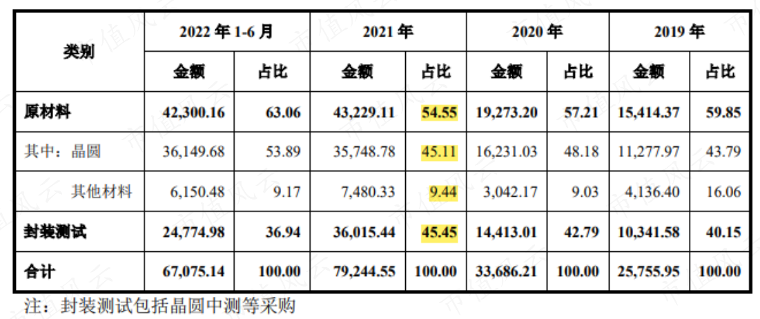 从公司公布的主要采购项中也不难看出,晶圆和封测成本几乎是全部。