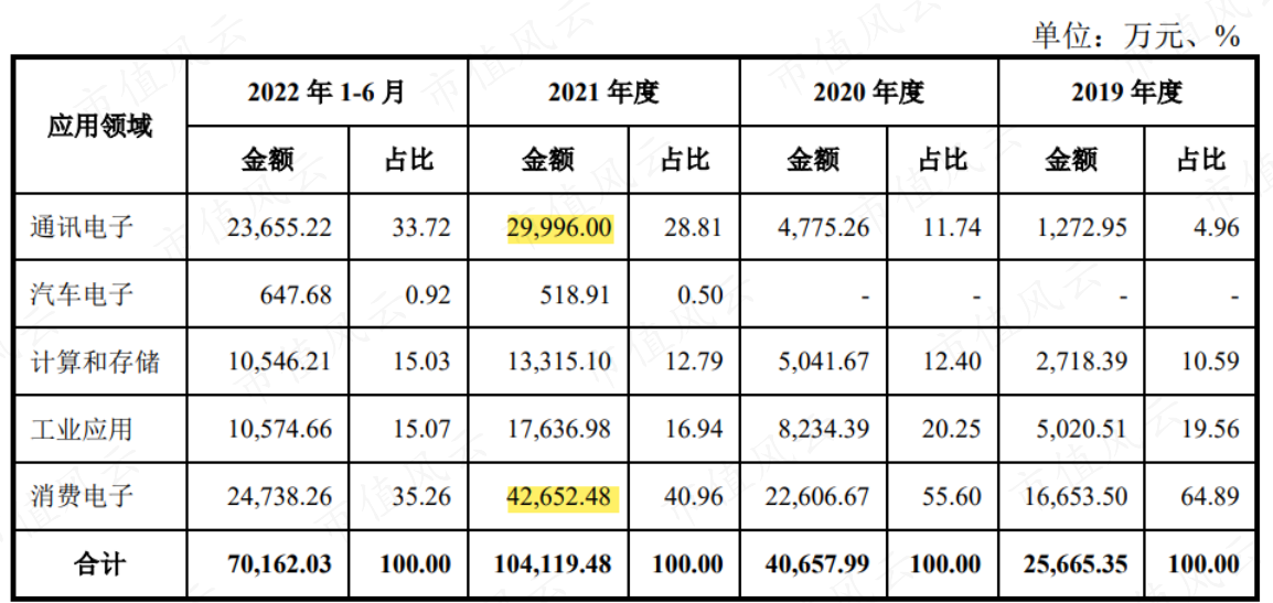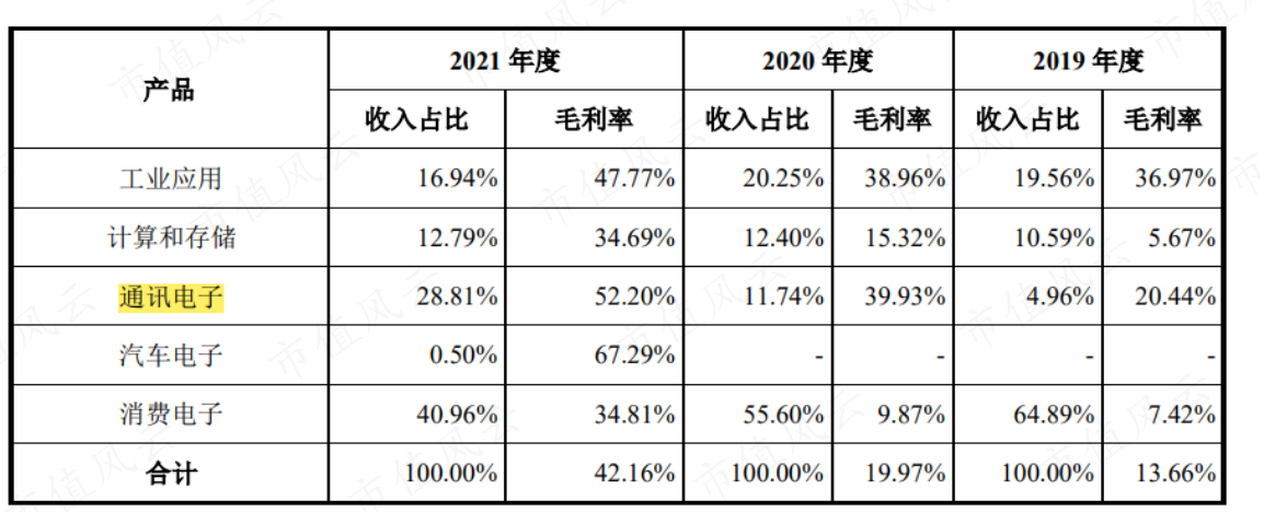 2021年消费电子营收占比最高,以4.2亿占40%,而通讯电子则增长最快,规模跃居第二,达3亿。