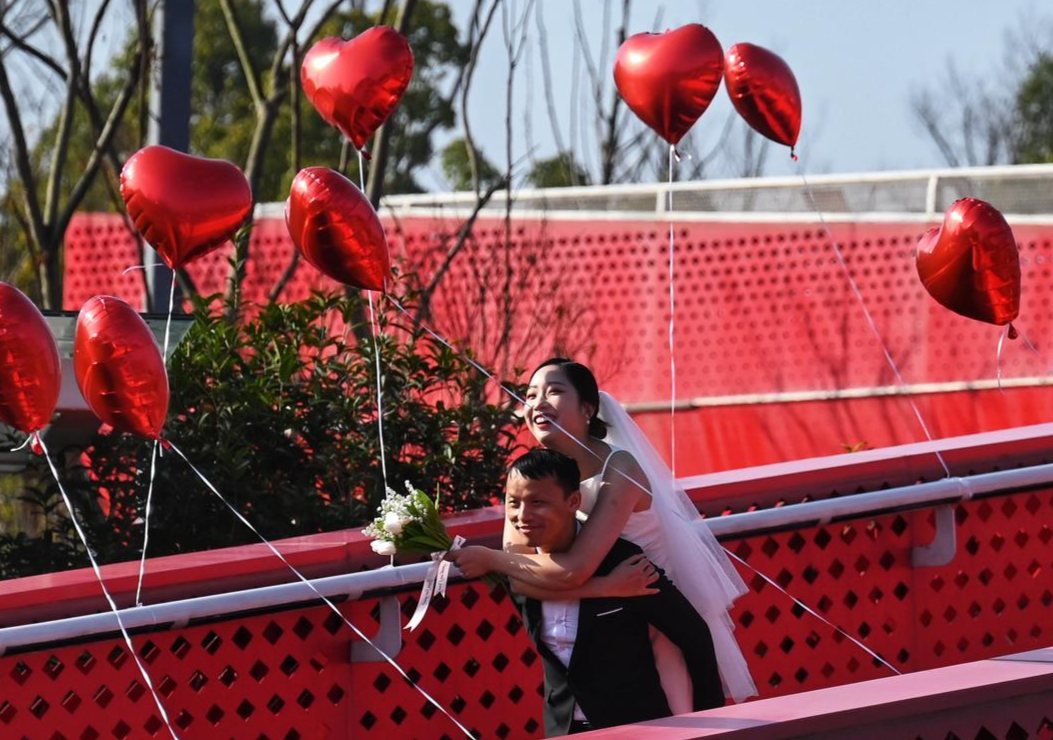 2月14日情人节,红星新闻记者从四川省民政厅了解到,“2.14”四川全省预约登记共4330对,成都市预约登记1012对,迎来了2023年第一个结婚领证高峰。而在成都今日也是天气晴好,浪漫氛围满满,多个婚姻登记处新人们扎堆,手捧鲜花,衣着隆重,欢声笑语地在这一天喜结良缘。