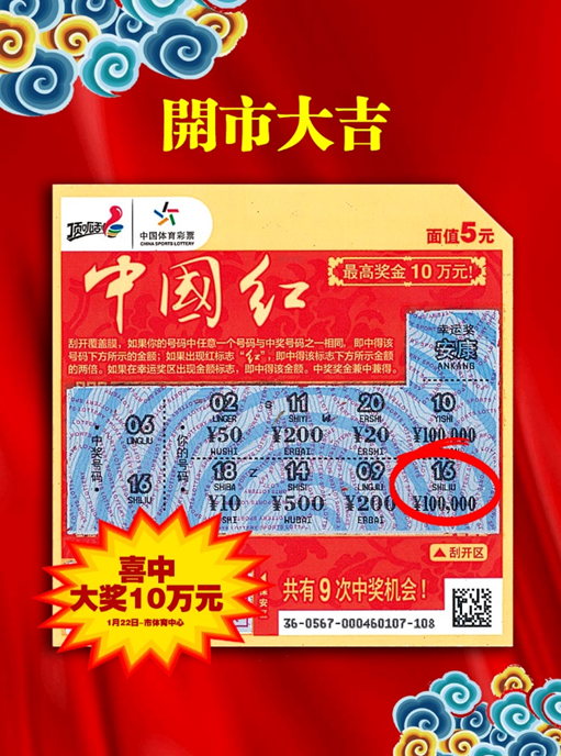 上午10点多,河南体彩南阳分中心兑奖台迎来了杜先生(化姓)一家三口,杜先生拿着一张红彤彤的“中国红”即开票说道,“是在这里兑奖吧?”工作人员按流程让杜先生登记后,接过彩票进行验证,“恭喜您,中了10万元,是在这里兑奖。”杜先生夫妇的表情一下子生动起来。