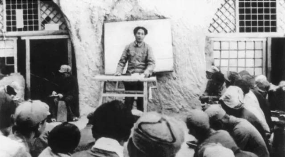 1938年4月,毛泽东在延安鲁迅艺术学院讲演