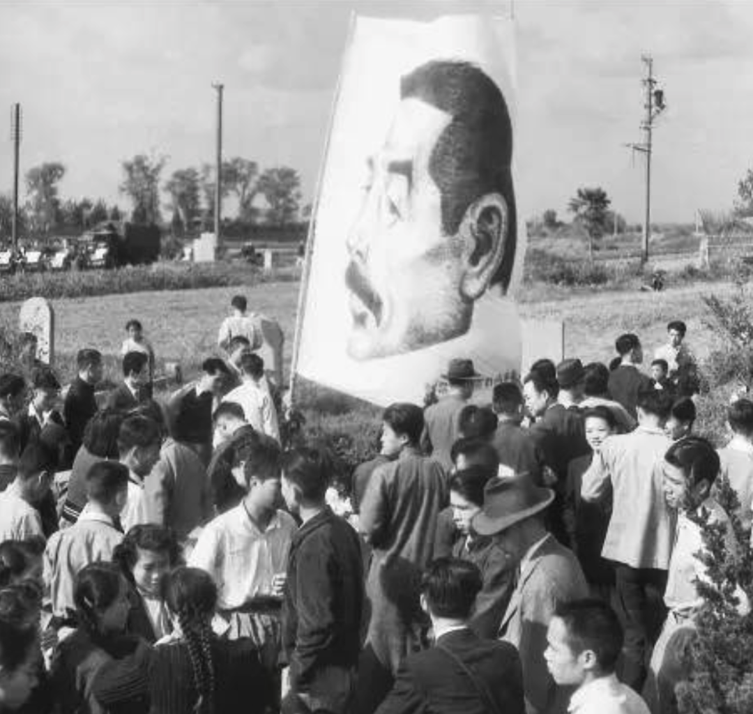 1946年,鲁迅逝世10周年时,上海万国公墓内悼念鲁迅的群众