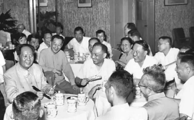 1957年7月,毛泽东在上海接见上海科学、教育、美术和工商界的代表人士的场景,图片下方左三为罗稷南
