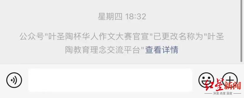 此轮再经媒体曝光后,2月9日,记者发现,山寨“叶圣陶杯”宣传所在的微信公众号——“叶圣陶杯华人作文大赛官宣”又换了“马甲”,更名为“叶圣陶杯教育理念交流平台”。