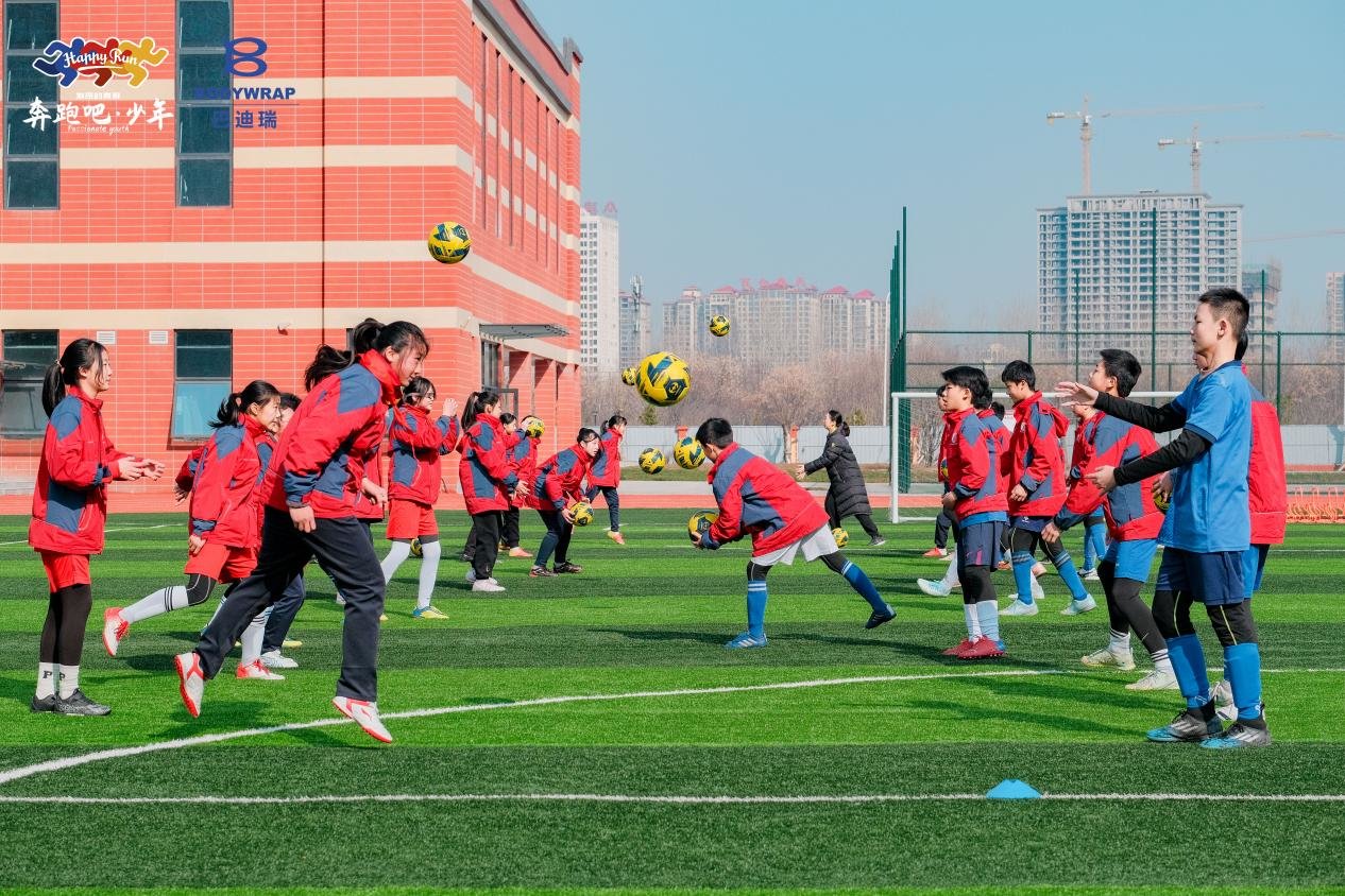 冠军运动员对足球运动进行基础讲解,带领学生进行专业的热身运动,进行演示、传授、指导、纠正动作要领,进行多方位的项目和动作展示,使参与学生更清晰的认识足球项目。最后,冠军运动员指导驻马店实验小学足球球队员进行友谊赛,增加了学生参与的仪式感与沉浸程度。(南乐县第三实验小学)