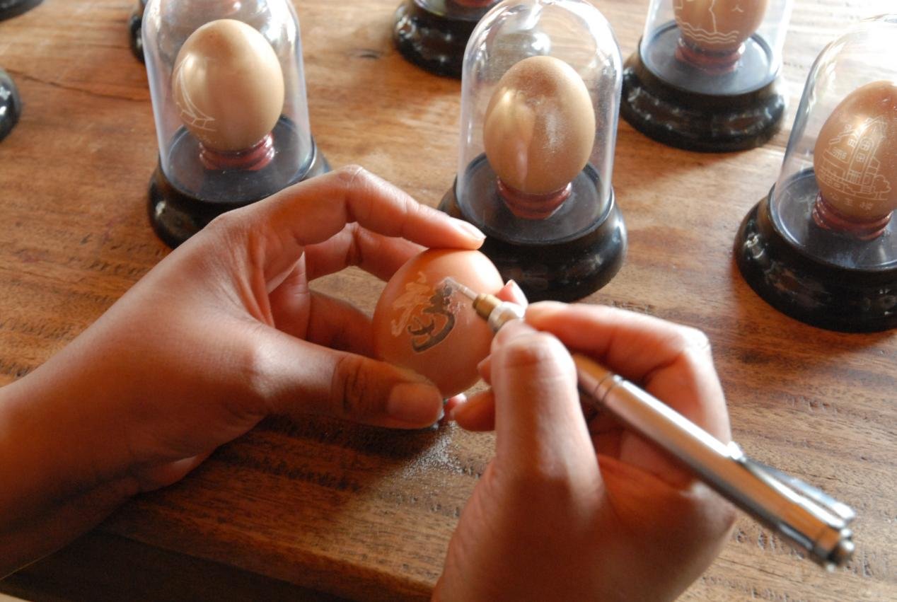 1月15日,山东省青岛市即墨区长江学校外籍教师非洲博兹瓦纳共和国的Dudu在即墨区移风店镇学习微雕技艺蛋雕。