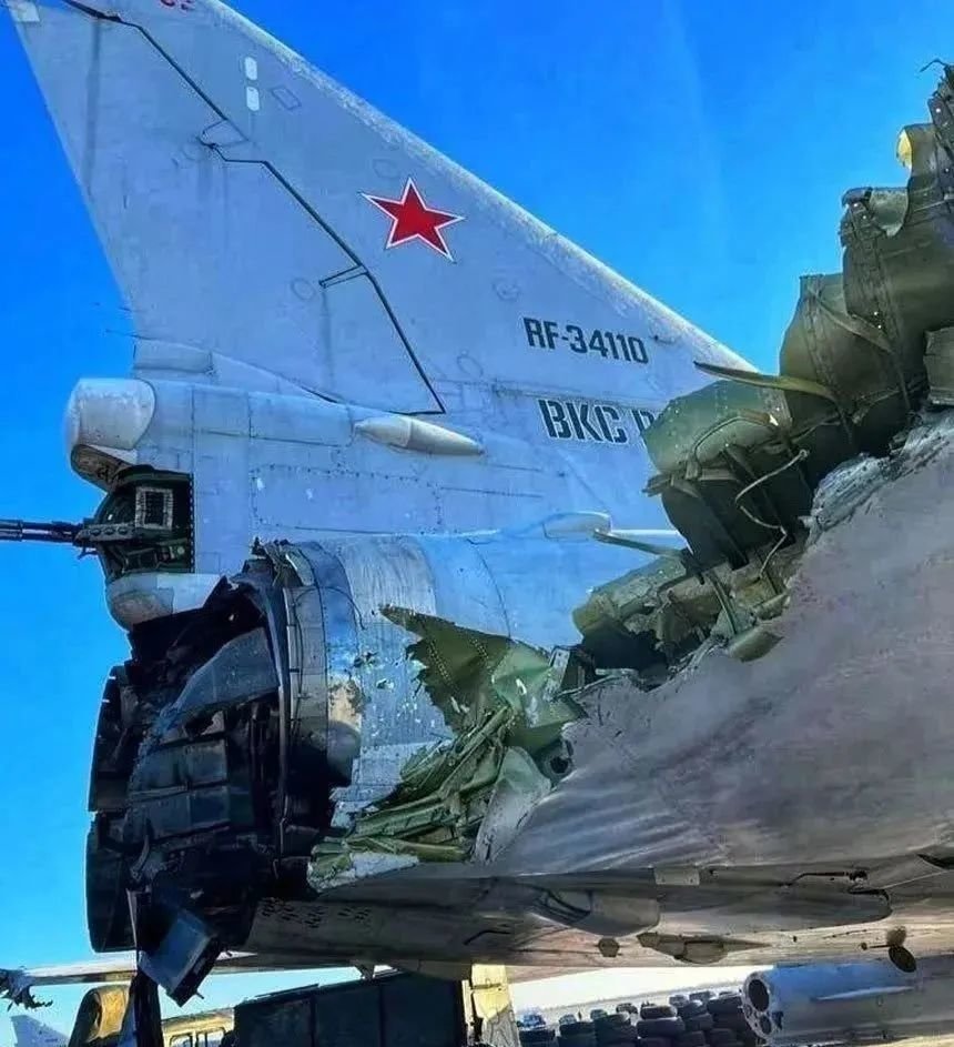 遭遇乌克兰无人机袭击后的图-22M3战略轰炸机,尾部出现明显破损