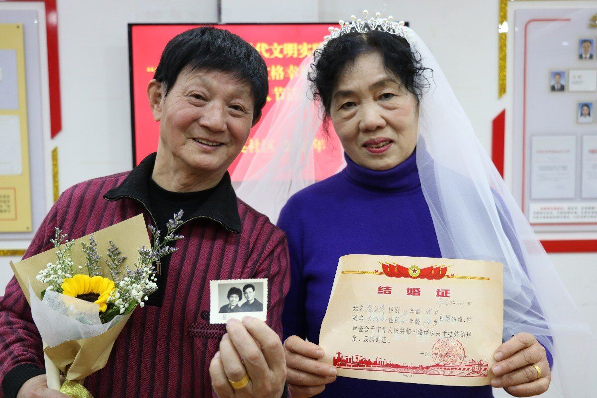 泛黄的结婚证见证着一对金婚老人的幸福生活。