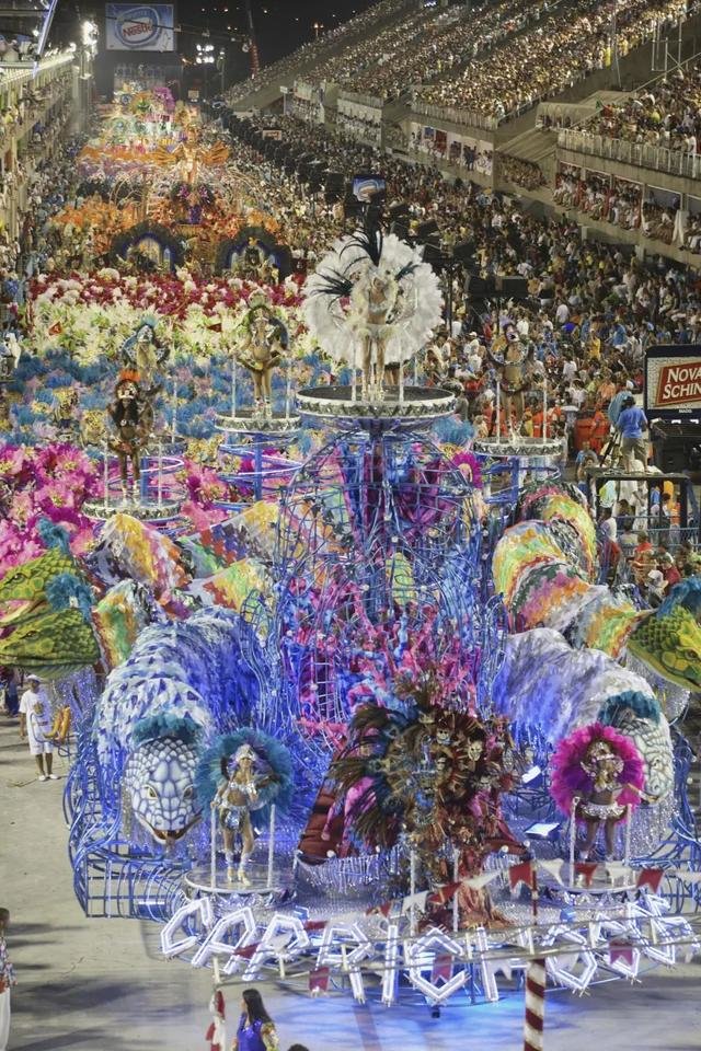 巴西狂欢节上的花车游行是狂欢节最精彩的部分之一,通常由各大桑巴学校或俱乐部组织,每个学校或俱乐部都会有自己的主题和表演。评委会将根据每个学校的舞蹈、音乐、服装和花车设计等来评分。