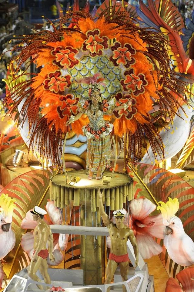 整个花车的游行可以说是视觉的盛宴,桑巴学校在装饰花车时不仅在呈现巴西的文化,可以说把世界各国的文化特色集万象于一车。