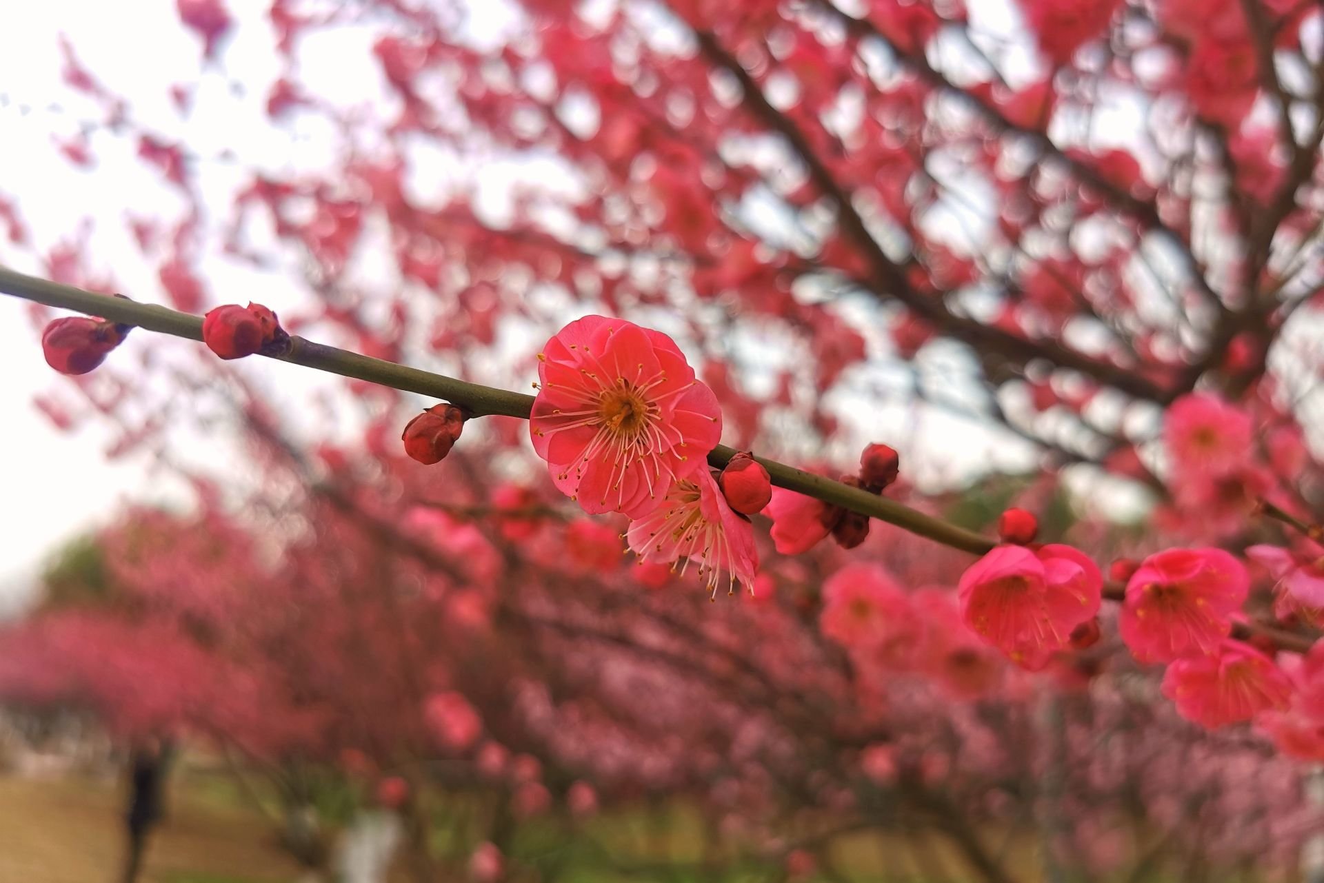 今年武汉的气温持续偏低,再加上前段时间阴雨绵绵,梅花花期较往年有所延迟,但梅花们已经顾不上寒风冷雨,纷纷枝头争俏。除青菱河西岸外,在洪山区园林局黄家湖公园管理中心负责养护的烽胜公园、烽火游园、彩虹郡隙地等多个城市绿地,都有梅花陆续绽放。本周开始,武汉天气逐渐转晴,梅花最艳丽的时候已经到来,花期将持续到2月下旬。