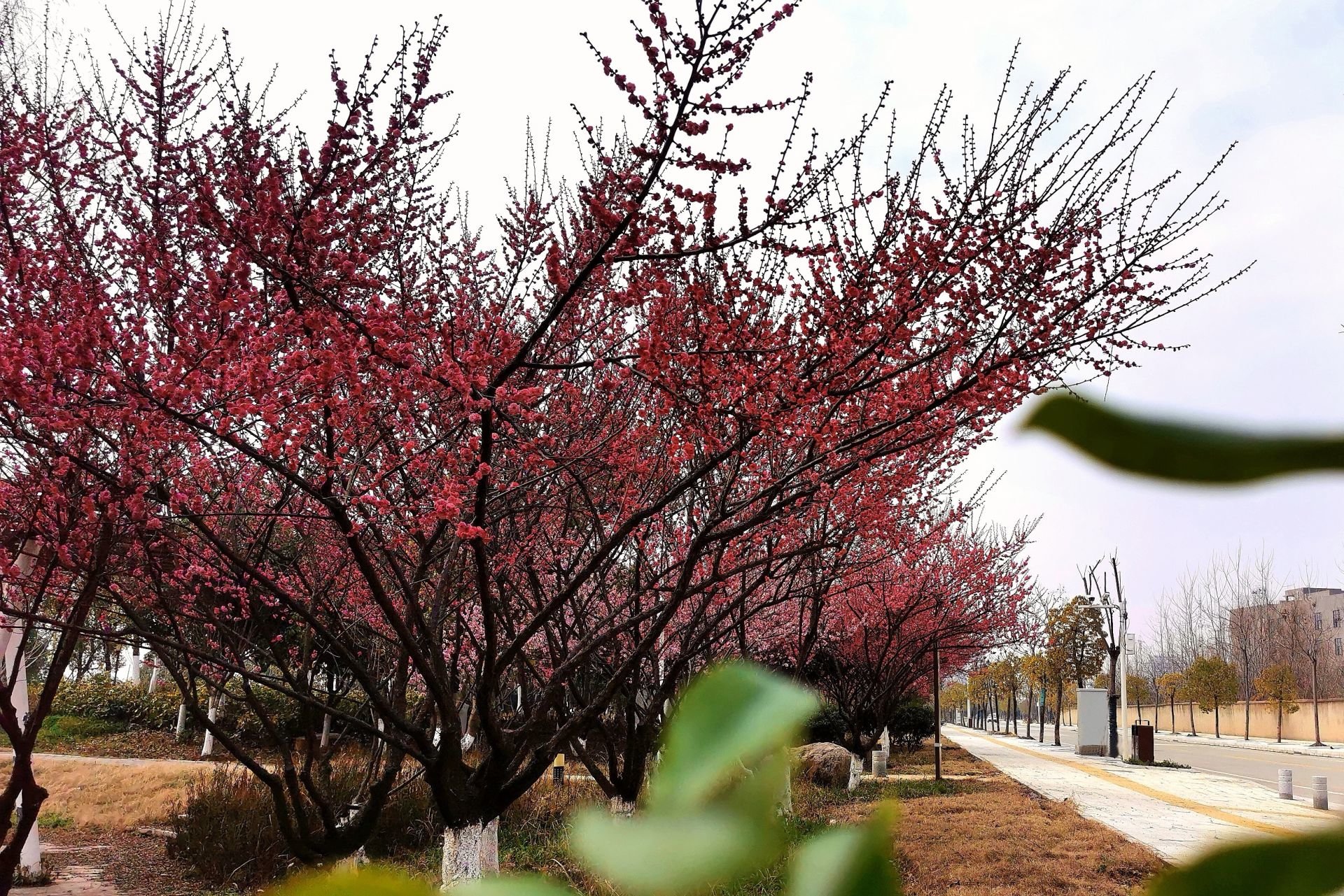 梅开百花先,独领天下春。青菱河西岸,沿河往长江方向,河与路之间的隙地已经改造为绿地,各类城市植被错落有致,人行道边,不同花色、不同品种的梅花正在次第绽放中。不论是人行道上行走,还是绿地间漫步,都能看到梅花的身影,置身花间,闹市中的片刻宁静油然而生。