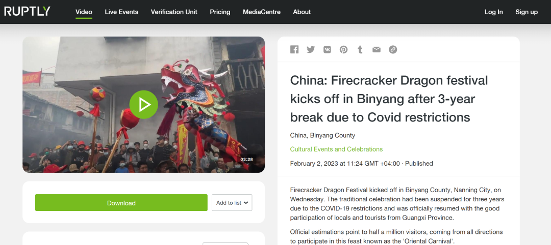 ▲2023年,今日俄罗斯对宾阳炮龙节的报道