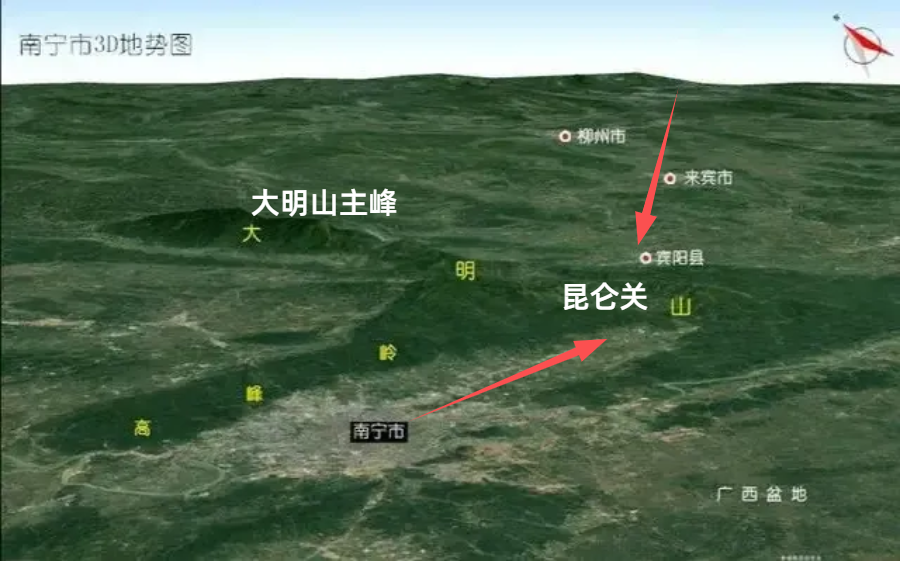 高耸的大明山脉中有一处地形绝佳的开口,维系广西南北方的交通。秦军在此修筑关隘,便是昆仑关的前身。