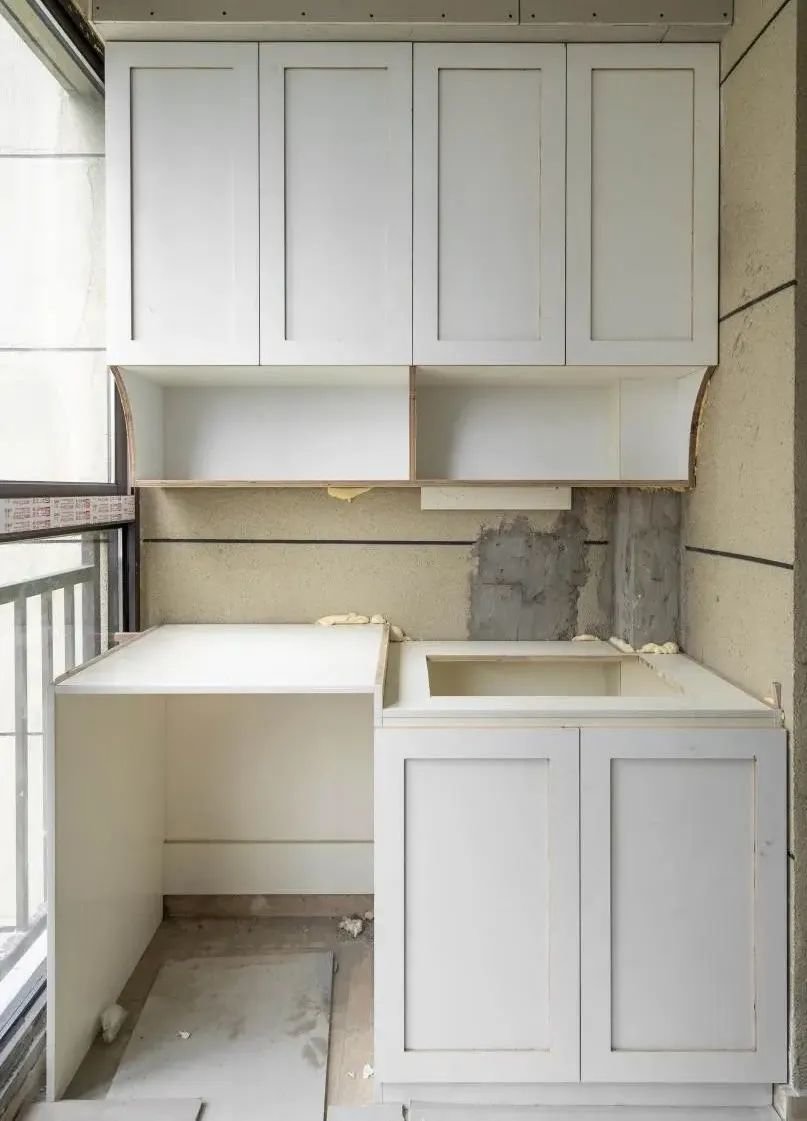 生活中阳台做上下两层的阳台柜比较多,中间做留白处理,难道是业主家阳台柜收纳空间不够,硬加的隐藏柜?