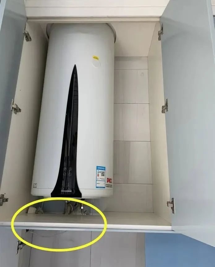 因为阳台吊柜里藏着燃气热水器,下方还露着管道,中间这60cm的隐藏柜子,关上柜门就能将管道全隐藏住,让整个阳台视觉上更清爽、好看,不会因为裸露管道而影响美观度。