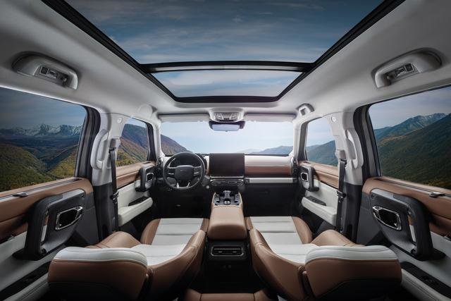 另外作为一台3/4刻度座驾,在兼顾一定的越野属性方面,车辆最小离地间隙是200mm,接近角 24 °、离去角 30 °、纵向通过角 19 °。再就是它还搭载了220V反向放电功能,放电功率达3.3kW,满足在户外用电扩展的需求。