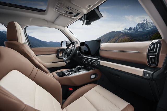 尾部造型相对比较简洁,两侧尾灯造型比较特别,整体倒是能和头灯呼应上。另外作为定位为一台中型SUV,车身尺寸长宽高分别为长宽高分别为4705/1908/1780mm,轴距为2810mm。
