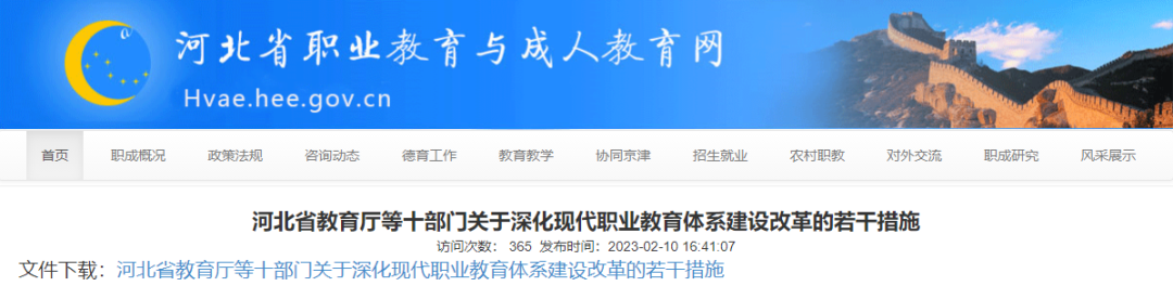 河北省教育厅等十部门最新发布关于深化现代职业教育体系建设改革的若干措施↓↓↓