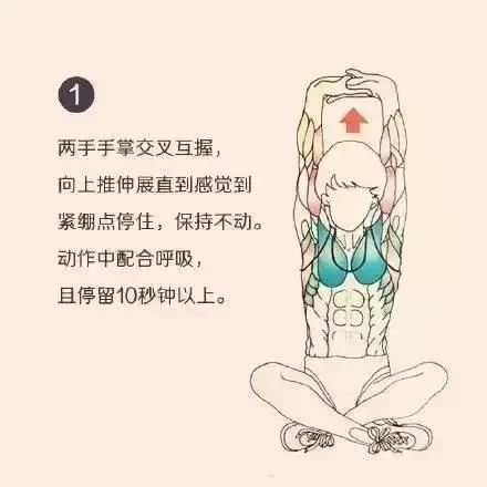 1、静态拉伸:拉伸运动中活动较多的肌肉,直到感到它完全绷紧,保持15到30秒,就可以了。静态拉伸能放松肌肉,有助于缓解身体的僵硬和疼痛感。