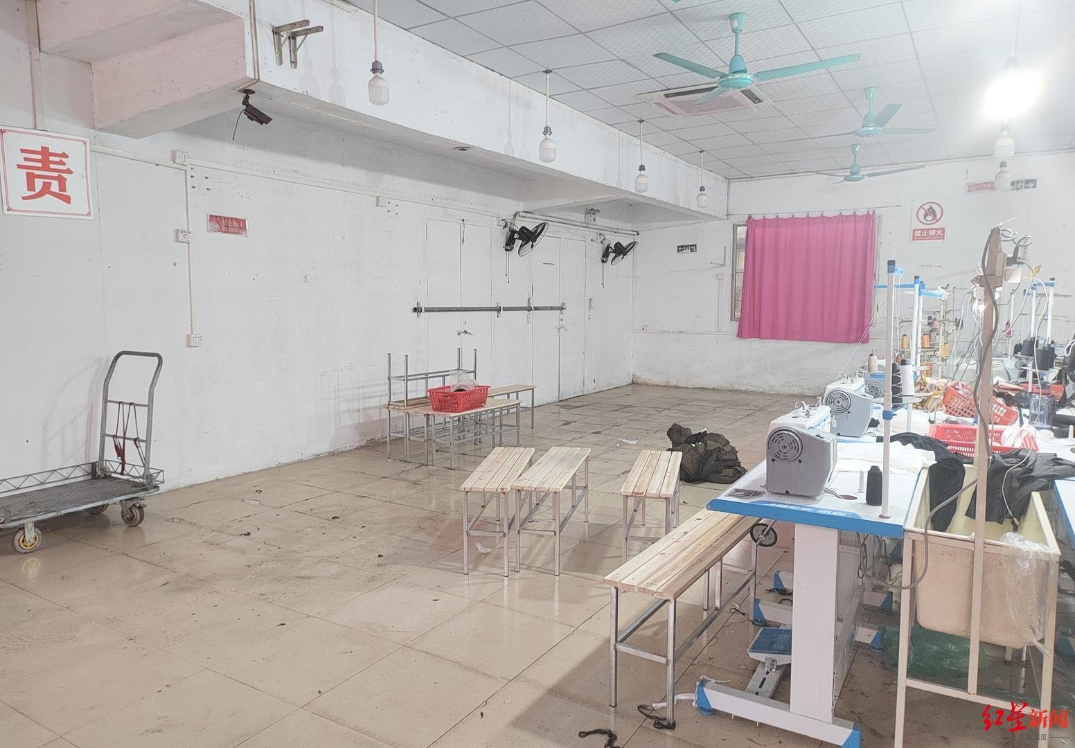 ↑某间顶层加盖制衣厂内,原来放衣车的位置如今只剩几条板凳,老板介绍,剩余部分衣车也正准备变卖