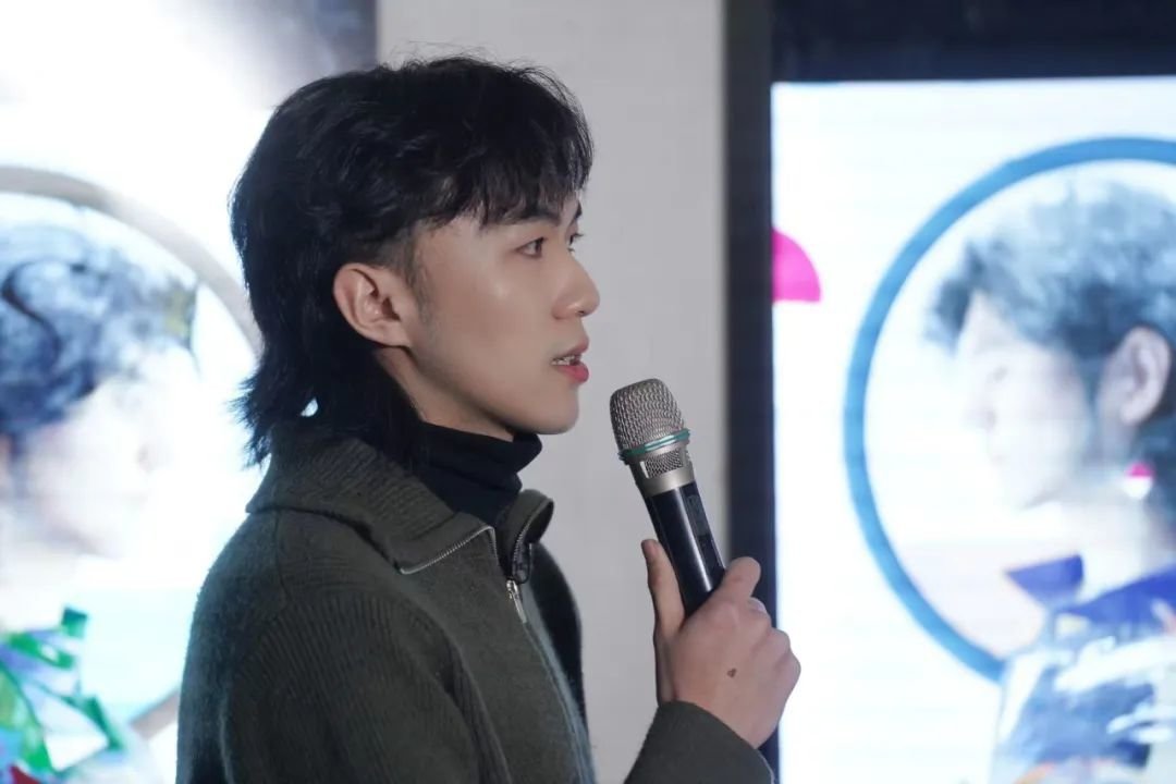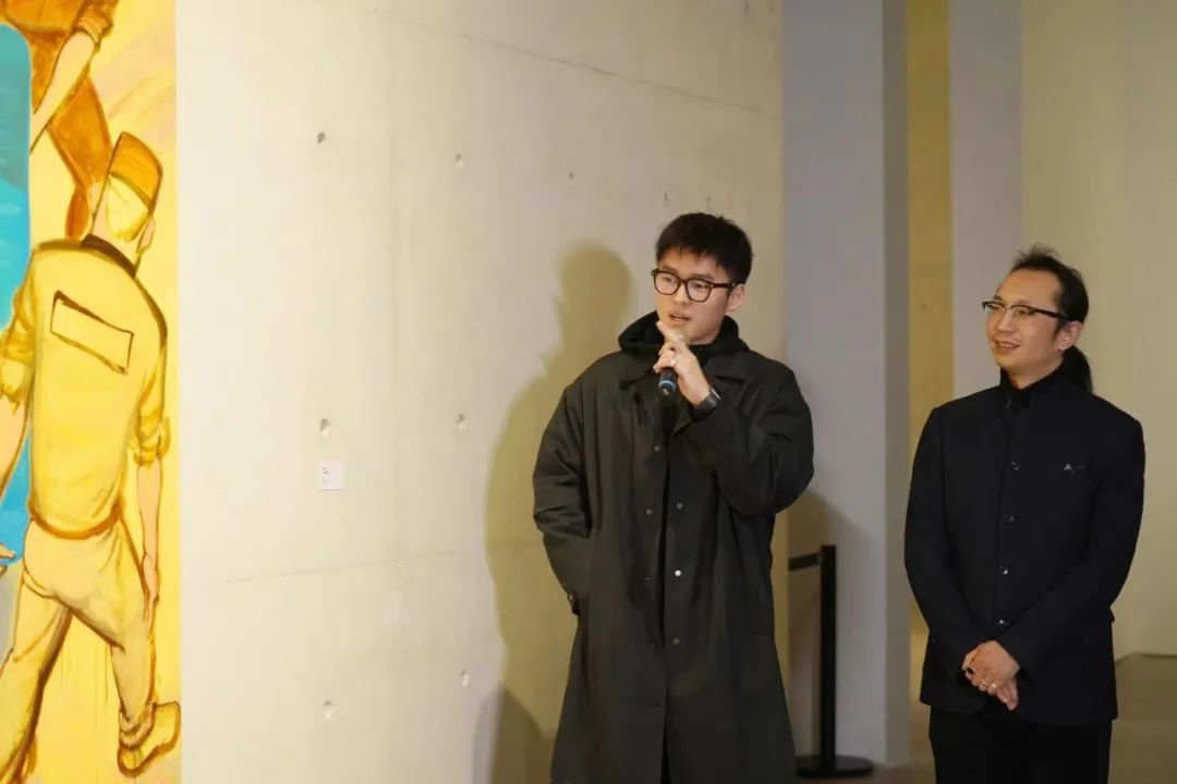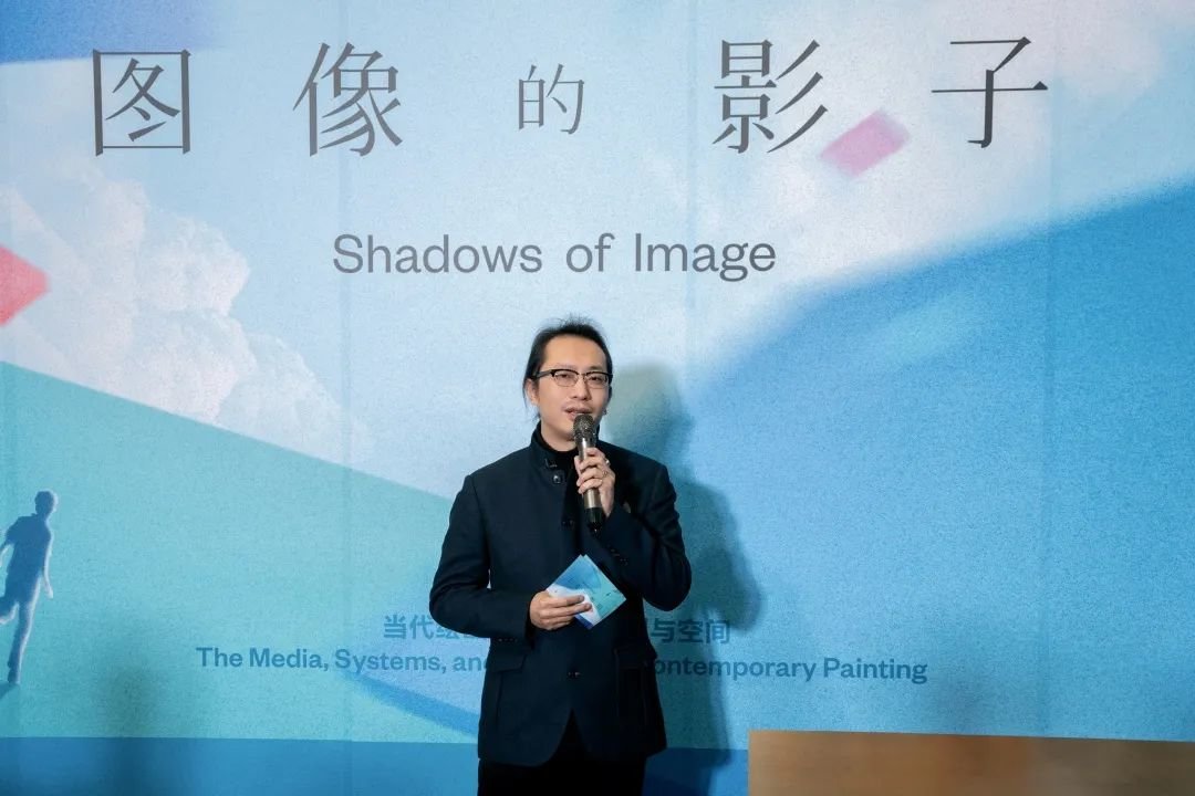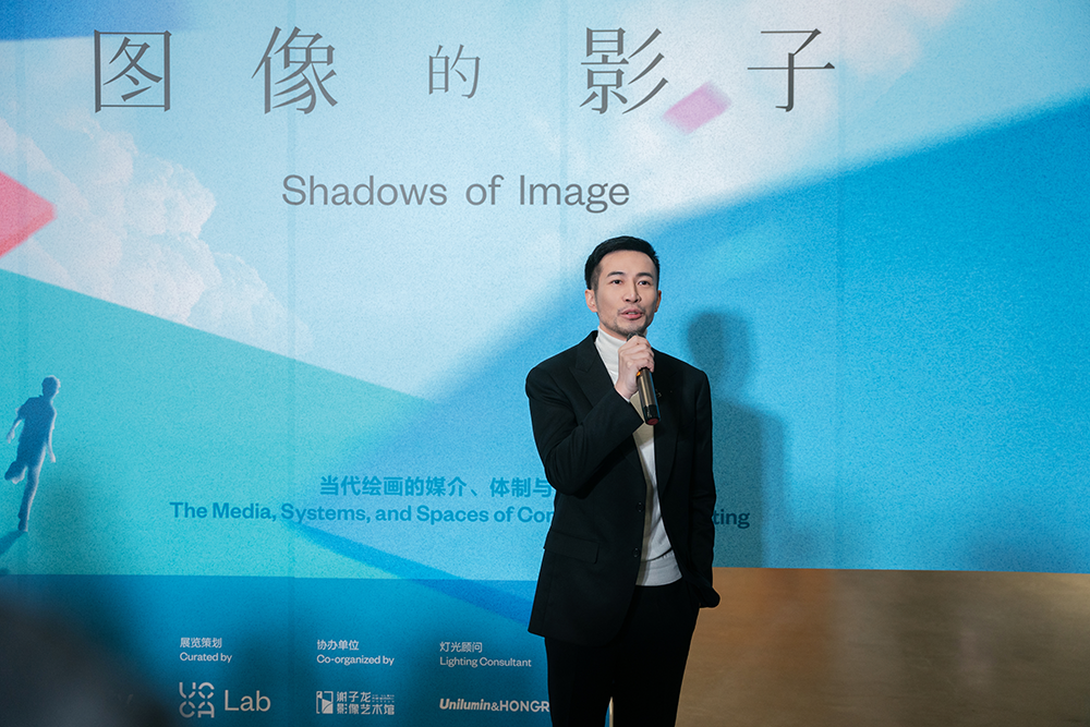 ▲ 《会画少年的天空》总制片人任洋在“图像的影子——当代绘画的媒介、体制与空间”展览开幕现场致辞,2023,长沙谢子龙影像艺术馆