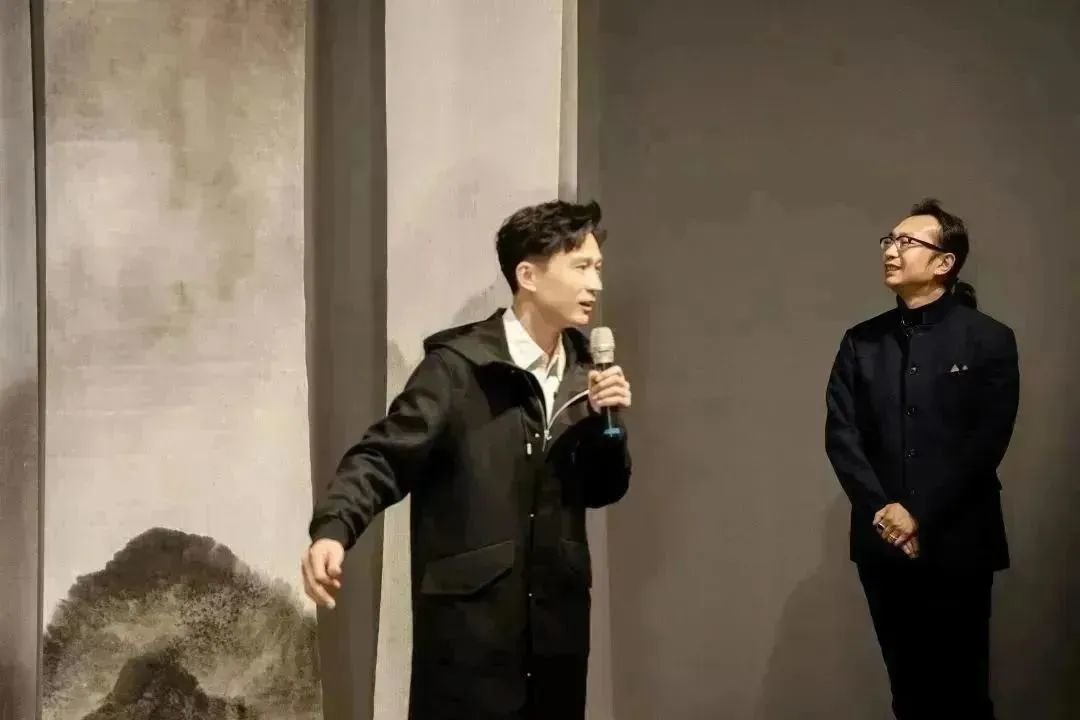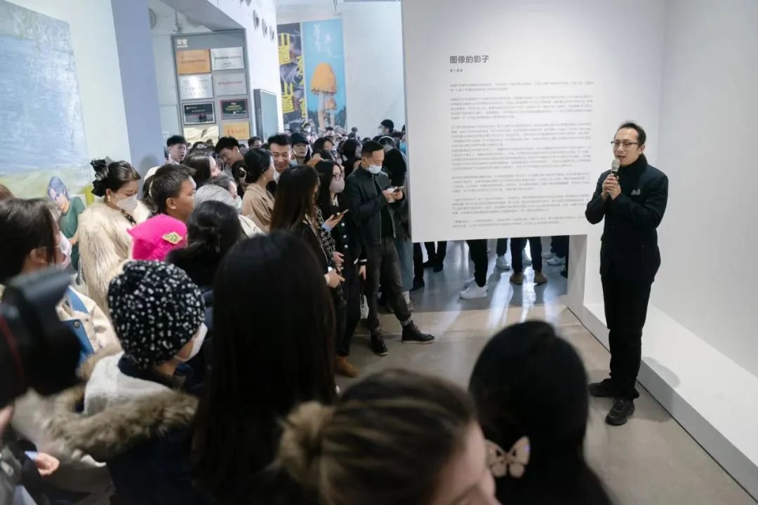 ▲ 参展艺术家尤勇在“图像的影子——当代绘画的媒介、体制与空间”展览开幕现场发言,2023,长沙谢子龙影像艺术馆