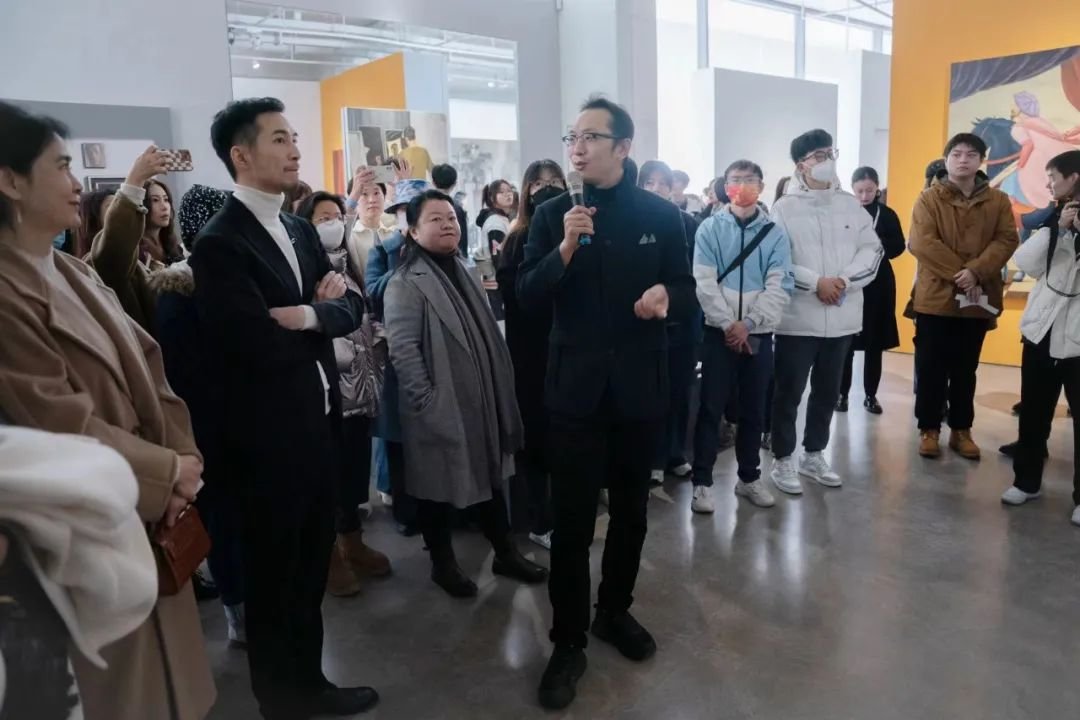▲ UCCA集团艺术总监、UCCA尤伦斯当代艺术中心副馆长、“图像的影子”展览策展人尤洋在展览现场导览,与观众交流,2023,长沙谢子龙影像艺术馆