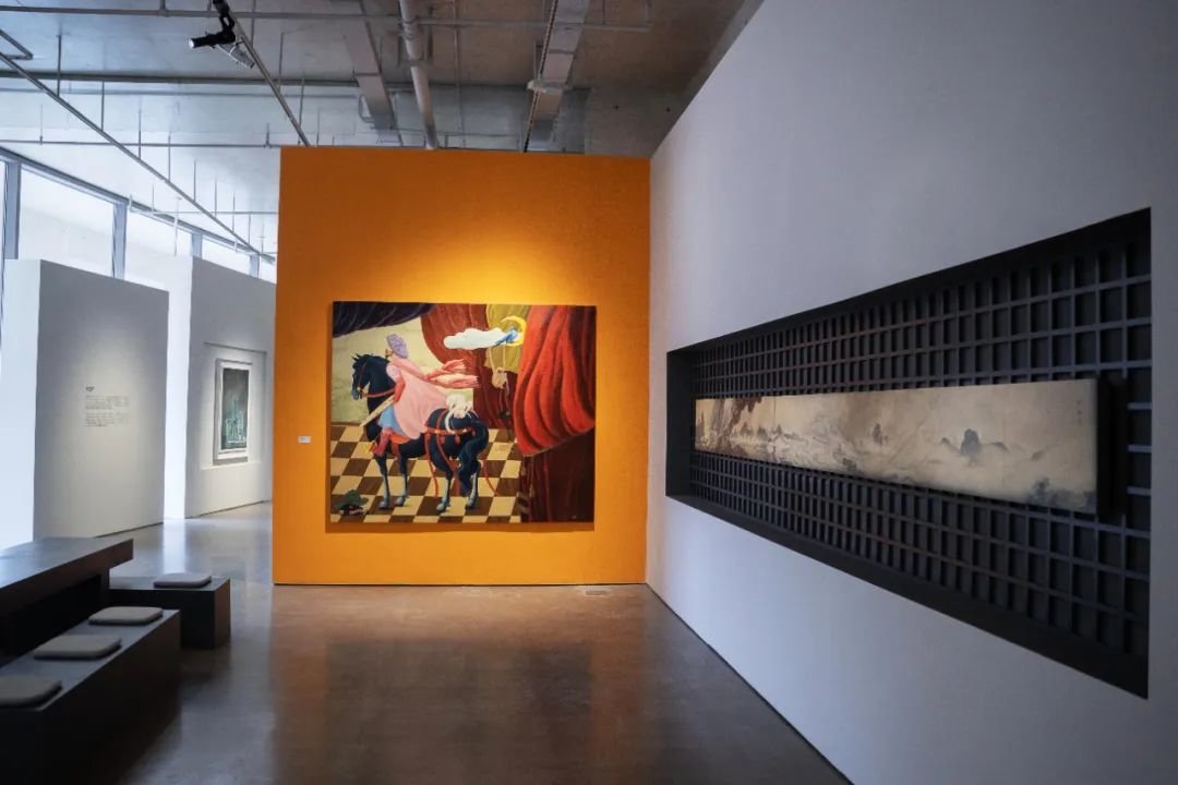 ▲ 翟莫梵 ,《问达云端》 ,2023 ,布面油彩 ,480 × 220 cm,“图像的影子——当代绘画的媒介、体制与空间”展览现场,2023,长沙谢子龙影像艺术馆