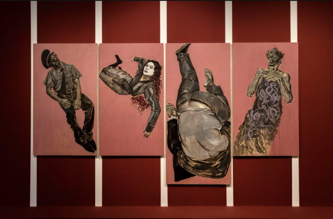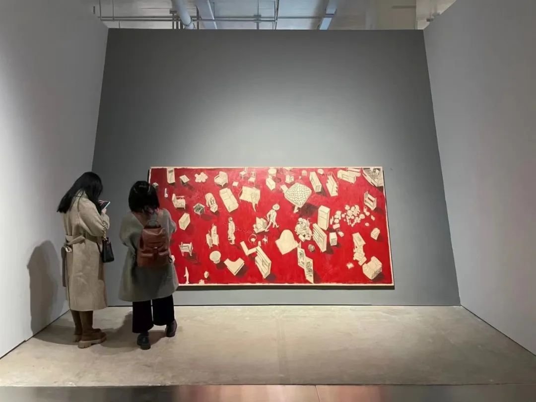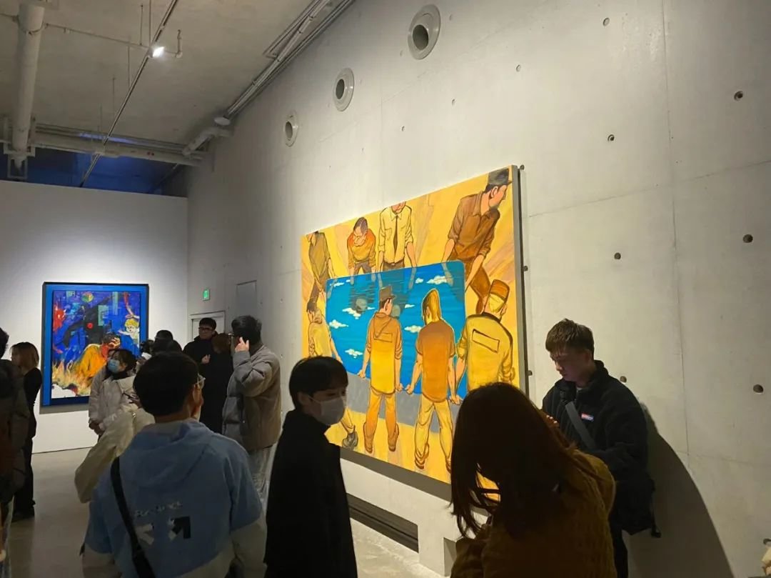 ▲ 尤勇 ,《聚众独处》 ,2023 ,布面油彩 ,320 × 180 cm,“图像的影子——当代绘画的媒介、体制与空间”展览现场,2023,长沙谢子龙影像艺术馆