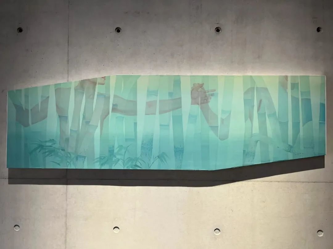 ▲ 任刚,《竹间》,2023,绢本设色,185 × 56.5 cm,“图像的影子——当代绘画的媒介、体制与空间”展览现场,2023,长沙谢子龙影像艺术馆