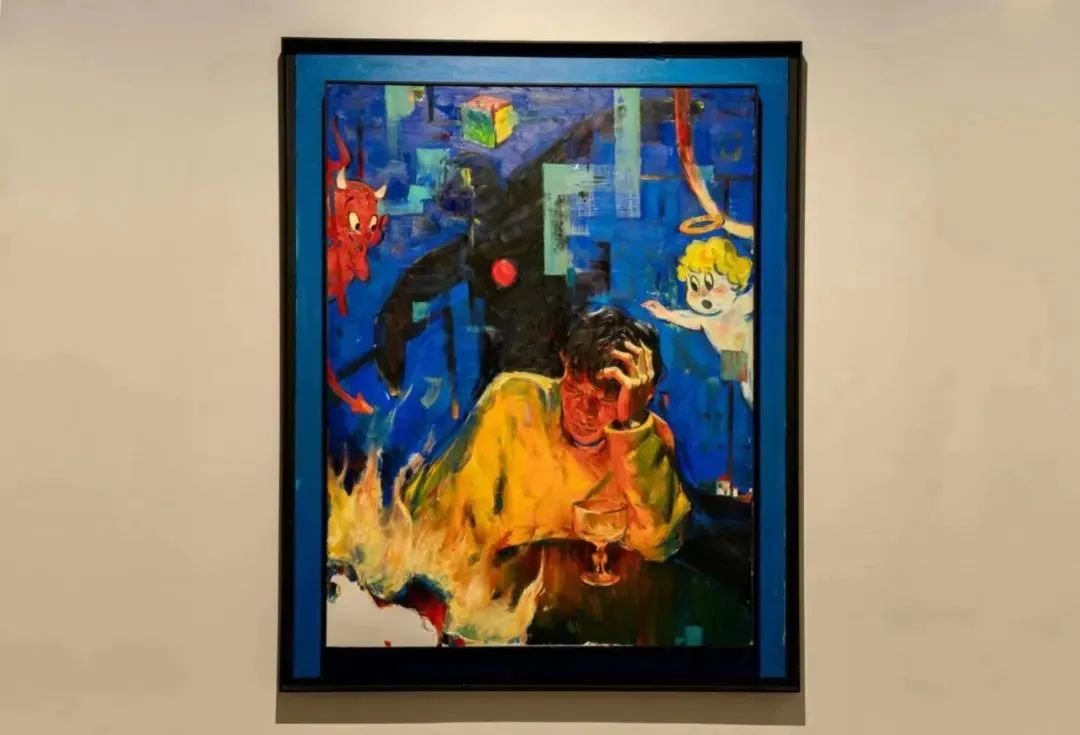 翟莫梵的《爱》《箴言》等4件作品对绘画、数字图像与文字间的关系展开探索,其油画作品《问达云端》和《闹天宫》均以独特的视角展现了东西方文化的融合,意图以绘画的形式与不同文化背景的观众进行对话。