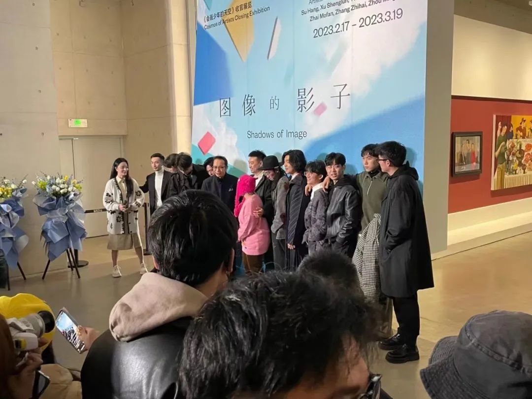 ▲ “图像的影子——当代绘画的媒介、体制与空间”展览开幕现场嘉宾及艺术家合影,左起:《会画少年的天空》天空加油官李莎旻子(左一);UCCA集团艺术总监、UCCA尤伦斯当代艺术中心副馆长兼本次展览策展人尤洋(左六);湖南卫视制片人任洋(左七);特邀嘉宾陆蓉之(左八)及参展艺术家尤勇、于立洋、李欢、周名德、徐圣伦、翟莫梵、任刚、张智海、赛本源、苏杭,2023,长沙谢子龙影像艺术馆