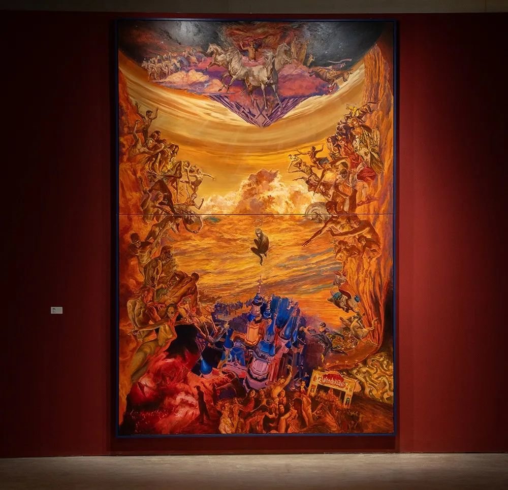 自20世纪80年代以来,中国绘画的媒介呈多样性,如堪培拉、油质和矿物颜料、数字技术等,以回应新时代对艺术创作的需求,并拓展了作者自身的艺术意义。体制则涉及将媒介转换为作品的过程,以及这一过程背后的创作思想,对于本次参展艺术家而言,艺术院校的教学背景和综艺节目的平台属性即为两种体制因素。而作为艺术体制的空间化身——美术馆内,观众往往通过图像层面感受画作中的信息和艺术魅力。图像与绘画艺术的概念范畴目前虽尚有丰富的讨论空间,但总体而言,欣赏绘画与欣赏图像是两种不同的认知路径,彼此间形成了重影。同时,人类图像的历史也涵盖了艺术演变的轨迹。