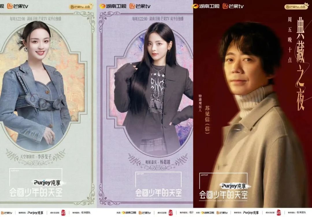 ▲《会画少年的天空》天空加油官李莎旻子,观展嘉宾、演员、歌手杨超越,“典藏之夜”特邀嘉宾、歌手、演员信(Shin,本名苏见信)