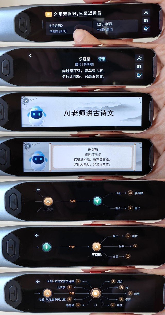 使用阿尔法蛋AI词典笔T20最大的优势就在于不只能够提供古诗词的查询功能,还能带领孩子找到这句诗的源头,通过逐句地解读,让孩子充分理解李商隐的唐诗当中蕴含的浓烈情感。